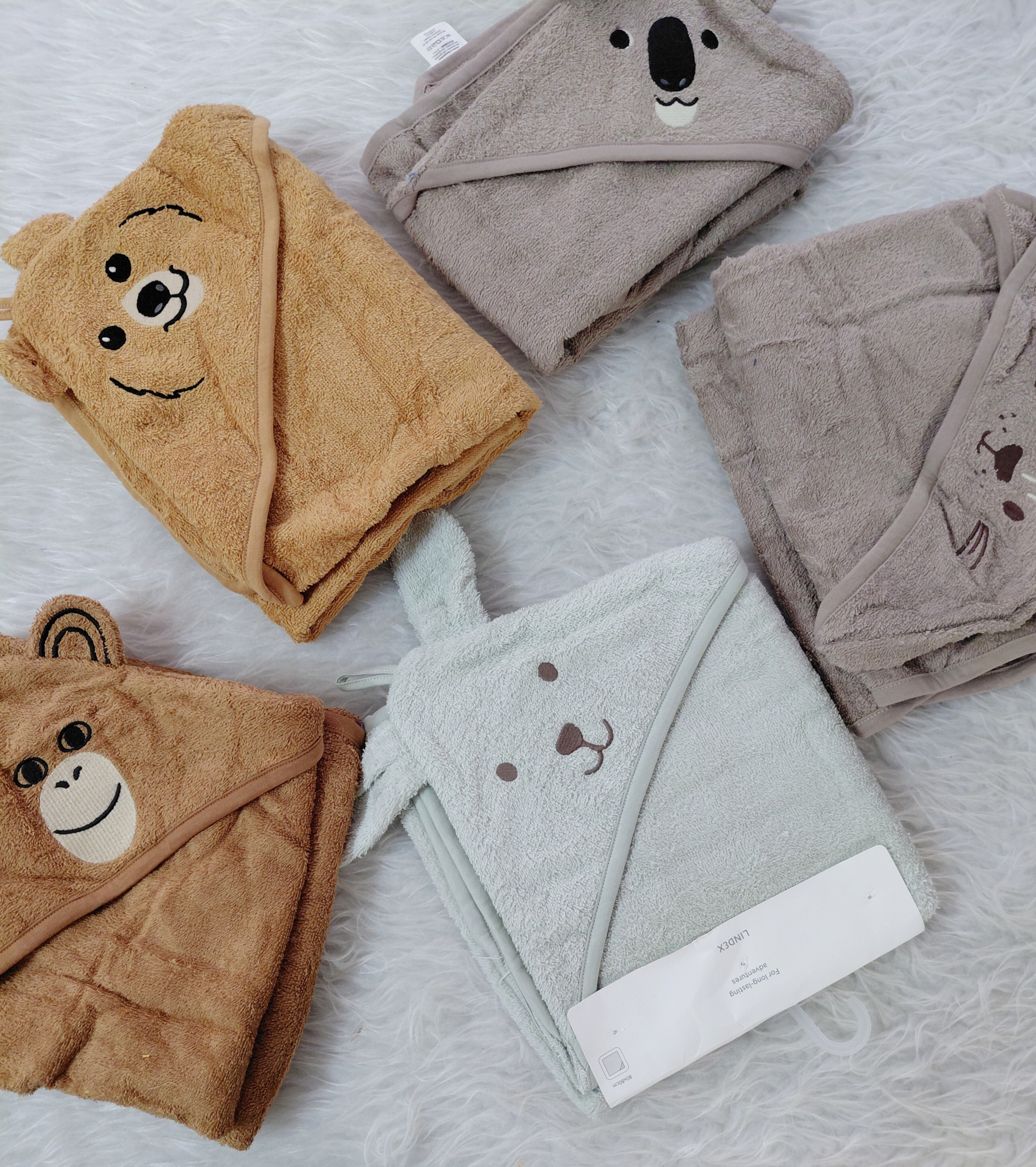 حوله بچه در سایز ۸۰ در ۸۰ رنگ سبز پاستیلی رنگ شکلاتی رنگ قهوه ای روشن برند لیندکس با آبگیری بالا: نامحدود